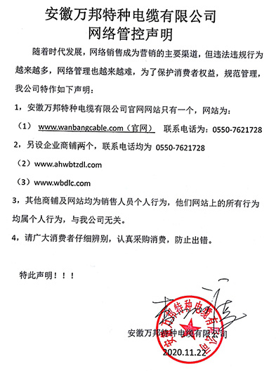 鄭重聲明:安徽萬邦特種電纜有限公司官方網站為:www_wanbangcable_com.lichengtongcheng.com,除此之外無任何子網站或合作網站,其余均為假冒偽劣。電話:0550-7621728 13485756353 地 址:安徽省天長市滁州高新技術產業開發區經四路29號